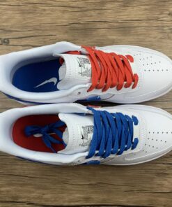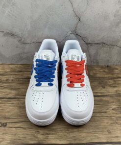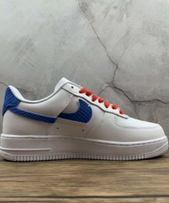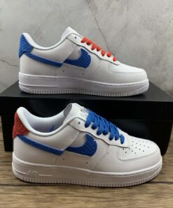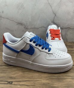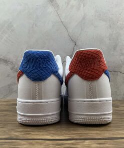 This rendition of the Air Force 1 features a clean White leather upper detailed with alternating Red and Blue Swooshes and heels constructed with a suede Snakeskin material. Inside-out tongue label atop a solid White rubber sole completes the design.