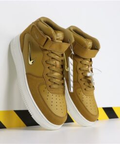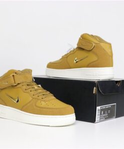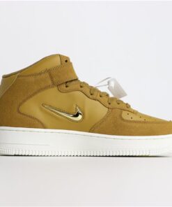 Featuring a combination of premium leather and soft suede, it also includes the midfoot velcro strap, shiny bronze small swoosh on the side, tonal lacing and a pristine white sole.
