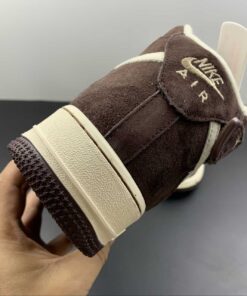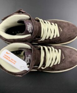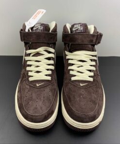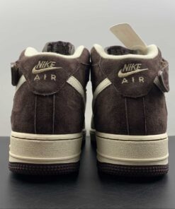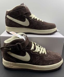 Dressed in a Chocolate and Cream color scheme. This offering of the Nike Air Force 1 Mid will look nearly identical to the OG, with a few minor changes. It features a Brown suede upper paired with Cream Swooshes, sockliner, laces, and midsole. Unlike the OG, the retro will feature Brown sole stitching instead of Cream. It’ll also come housed in a throwback shoe box with vintage AF1 ad printed tissue paper.