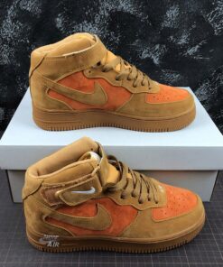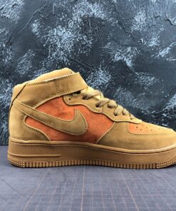 and now a fall-ready take on the Air Force 1 Mid is the next shoe to score a little extra branding. Various earthy shades of reddish-orange and tan are used on the upper for an interesting tonal blocked look, and the extra logos arrive via a white Swoosh on the collar strap, white Air hit above the toebox, and a white Nike hit directly above the standard Air branding on the midsole. The classic shoe is interesting in that it trades out the all-over print and taping seen recently on other silhouettes for more simple means of embellishment — a welcome change, as some of the previous models may have been a touch too wild for more moderate sneakerheads