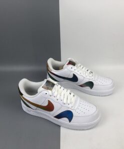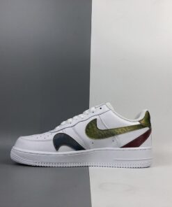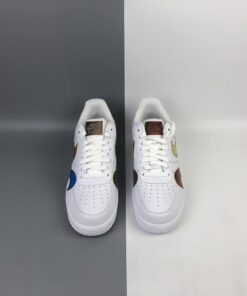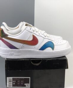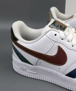 While the design is a direct nod to John Geiger’s “Misplaced Check” collaboration, this Nike Air Force 1 Low features a clean White leather upper covered in various misplaced Swoosh logos in an iridescent finish, which continues on the tongues and heels. A solid White AF1 rubber sole completes the design.