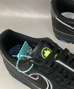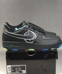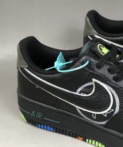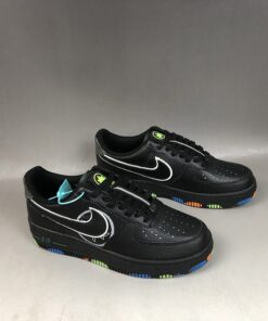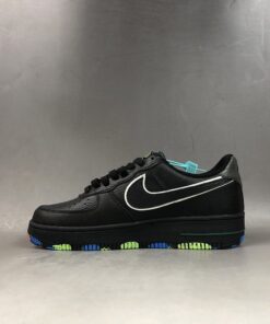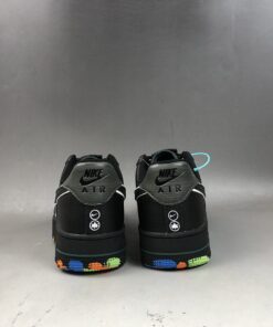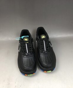 This special offering of the Nike Air Force 1 Low features a solid Black upper built with tumbled leather on the toe, eyelets and Swoosh logo along with grain leather overlays and mesh netting on the side panels. Green NYC Parks logo on the tongue labels, map graphic insole, dual branding on the heels atop a colorful camouflage-styled rubber outsole completes the design.
