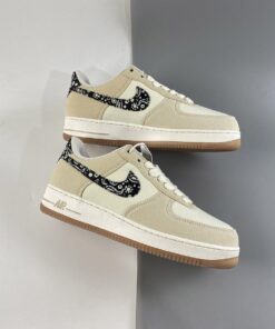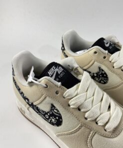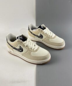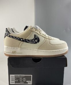 the newly-surfaced pair ostensibly combines two collaborations under the Texas-native’s belt. Textured fabric panels make up the entire upper in hues not too dissimilar from the “Sail” color scheme that appeared on Scott’s Air Force 1 in 2018. Elsewhere, profile swooshes and “NIKE AIR”-branded heel overlays boast a black and white pattern reminiscent of La Flame’s SB Dunk Low from February 2020. Sole units forgo any Western-appropriate prints, but couple the off-white color palette with a semi-translucent light gum brown outsole.