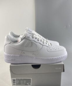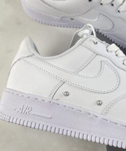 Save the Swoosh and heel overlays, the pair swaps smooth leathers for tumbled, and tacks on leather tongue tags to deviate slightly from the staple. To elevate the pair a little more, Nike has tacked on pearlescent studs at the vamp and mid panel, some of which come finished with a Swoosh detail. The pair is then finished off by debossed branding at the heel and tongue, and black Nike Air motifs on the insole.