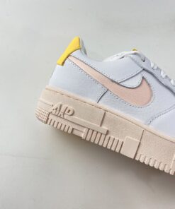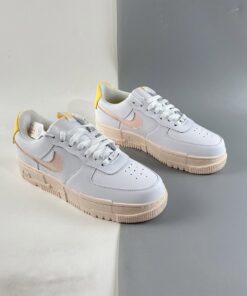 Dressed in a White, Arctic Orange, Sail, and Orange Pearl color scheme. This offering of the Nike Air Force 1 Pixel features a White leather upper with mesh tongues. Highlighting the shoe are the Orange hues on the tongues, rear overlays, cut-out Swooshes, and insoles. A Pinkish-colored rubber sole completes the design.