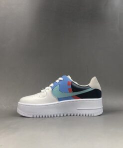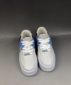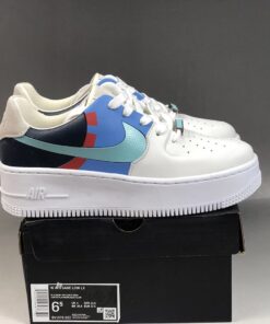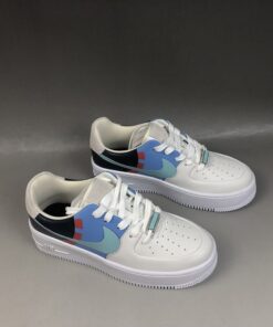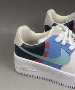 The next pair we have to showcase comes highlighted in White leather across the upper while Light Blue and Navy is seen by the heel with accents of Red. Following we have a pebbled leather, suede on the heel tabs, Turquoise Swoosh on the panels and a basketball court graphic on the insoles. Finishing the look is White on the platform midsole and rubber outsole.