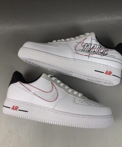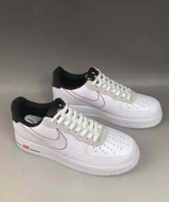 This iteration of the Nike Air Force 1 Low features a White leather upper highlighted with a scripted Swoosh logo on the sides. Other details includes shaggy suede on the eyestays, similar scripted branding on the tongue, heel and insoles finished with Red contrasting accents.