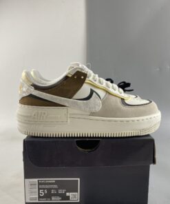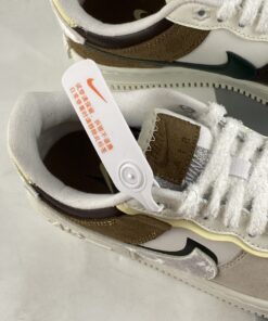 the layered take on the Air Force 1 Low finds itself dressed up with black bow ties at the dubrae. While this inclusion immediately stands out, the sneaker’s mixed material, layered upper isn’t something to ignore. White leather operates as the upper’s base layer while taupe and golden brown suede overlays are met by chocolate brown leather detailing throughout. The medial side of the model is further split up utilizing dark espresso panels and a forest green Swoosh with the insoles working in tandem with the array of warm hues. Lastly, the standard Air Force 1 sole unit arrives in white with the model’s signature added on midsole completing the look.Underfoot the model is rounded out by a doubled up “AIR” heel counter and midsole that’s cream tonal spectrum continues toward the tread.