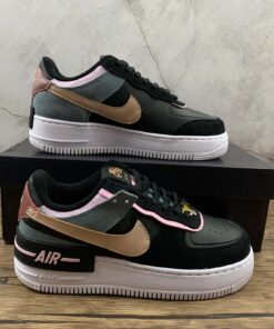 Dressed in a Black, Light Arctic Pink, Claystone Red, and Metallic Red Bronze color scheme. This Air Force 1 Shadow comes constructed in a mix of leathers and suedes completed with a solid White rubber sole.