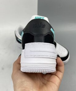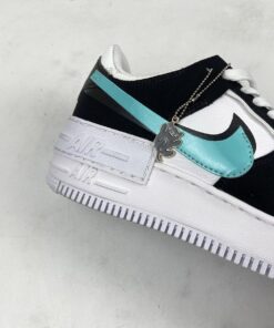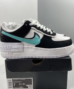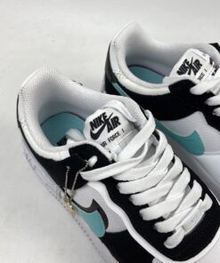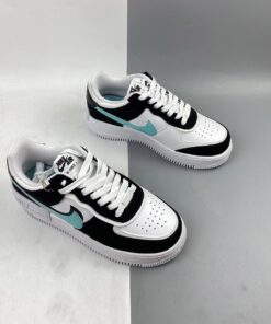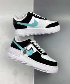 This offering sports a White leather base with Black nubuck overlays. Highlighting the shoe are Tiffany Blue contrasting accents on the Swooshes and insoles completed with a White thick rubber sole.