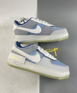 The Nike WMNS Air Force 1 Shadow is getting added to Nike’s upcoming “Bright Side” Collection which already includes the Nike Dunk Low. This iteration of the Nike WMNS Air Force 1 Shadow switches things up a bit when it comes with materials as it swaps out the traditional leather and replaces it with a fancy corduroy in light neutral tones that include white and grey. Suede completes the look in grey and different shades of blue along with pastel green accents throughout. Nike branding on the heels, new branding on the tongues, and “On The Bright Side” written on the right insole wrap things up
