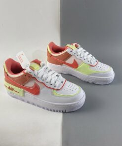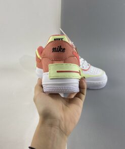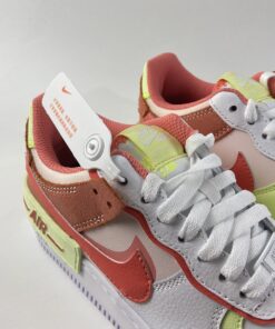 The short-lived simplicity ends with the sides introducing leather Swooshes in a bright pink dubbed “Crimson Bliss.” On the lateral side, the aforementioned Swoosh is placed directly over a graphic of a Swoosh printed on the mid panel for a layered illusion. This side also features a rubber AIR overlay that mimics the branding found on the white midsole, although it’s tinted in a soft green named “Lime Ice” and uses pink as an accent shade. As for the medial side, the hindfoot panel opts for a suede-like texture and a “Magic Ember” coloring that is quite similar to Crimson Bliss. The soft red and suede finish are also repeated on an overlay on the lateral side’s hindfoot and the heel tab logo. Final touches of Lime Ice are applied to the tongue label and the layered heel tab to complete the summer-ready design.