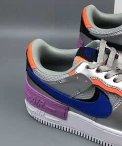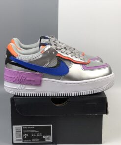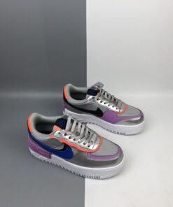This Shadow iteration of the Nike Air Force 1 comes dressed in a Metallic Silver, Fuchsia Glow, Hyper Crimson and Racer Blue color combination. Highlighted with a layered design which gives it a shadow like look for the Swoosh where its nickname comes from. They also feature a thicker midsole done in White which also covers the rubber outsole.
