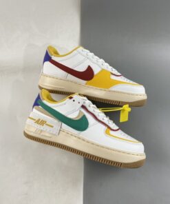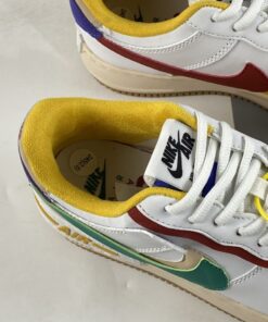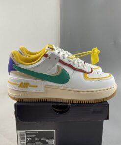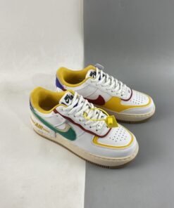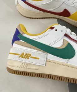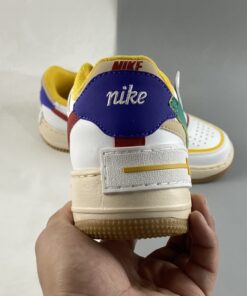 This offering of the Nike Air Force 1 Shadow comes constructed in a mix of leather and mesh materials featuring a White base detailed with Multi-Color contrasting accents. A Sail midsole with Gum trimming along the outsole completes the design.