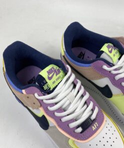As with most recent iterations of the model, the newly-surfaced pair features a muted base that sets the stage for louder accents. “Photon Dust” suede and white leather are accompanied by hits of “Barely Volt” across the forefoot, midfoot, and heel. Elsewhere, faded purple and orange hues take over detailing along the tongue and ankle, while “Royal Pulse” joins the mix via the stacked midsole tooling, “NIKE AIR”, “AF1”, and swoosh logos indulge in disparate shades of the aforementioned colors, but contribute to the Air Force 1 Low-variant’s bold, fashionable look. Sole units round out the pair in a simple white arrangement, but fall in-line with the design given their chunky composition.