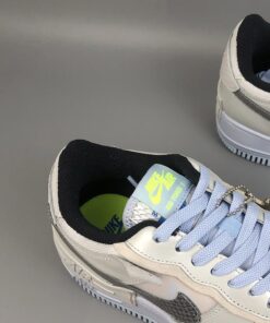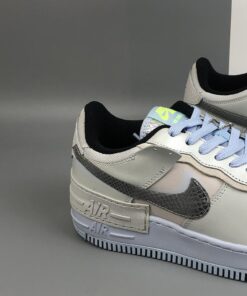 Throughout its time on the market we’ve seen the lifestyle silhouette take on a wide array of new color schemes, and even slap on some retro-styled patches, but for the first time ever we’re seeing a modification in material of its Swoosh logos. Reptilian character is now employed as snakeskin fabrics wrap Carolyn Davidson’s iconic logos, and are outfitted with a gunmetal finish. Cooler tones aplenty are present throughout the rest of its look, as the upper mixes two different shades of grey, and the bottoms, a muted baby blue. More evidence of vibrant contrasting can be credited to its laces which adapt to a “UNC” hue, followed by highlighter yellows that sprinkle onto the tongue and Nike Air branded footbeds.