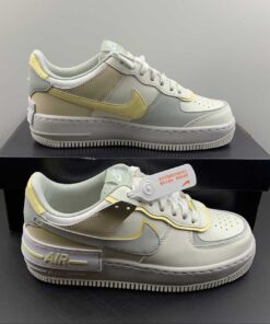 Done in an official color scheme listed as Sail, Light Silver, and Citron Tint, this pair is constructed in a mix of leather and mesh materials consisting of a White base that is then detailed with the pastel contrasting accents. The solid Sail rubber sole matches up nicely with the aesthetics of the upper.