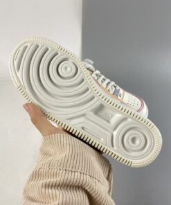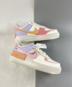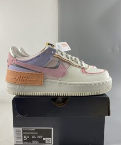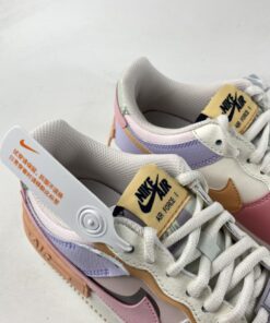 The women’s exclusive flaunts “Sail” uppers constructed of primarily smooth leather. On the lateral side, the pastel tints are mostly applied to the hindfoot area. Such tones include a muted blue on a panel, “Pink Glaze” coloring the Swoosh and heel tab, and the rubber midsole overlay’s “Orange Chalk” makeup. These shades are much more balanced on the medial side, where the aforementioned pink and blue are found on both the toe and the heel, respectively. Black piping details on the tongue label and the darkened branding on the heel tab break away from the pastels to deliver a graphic look that completes the stylish offering.