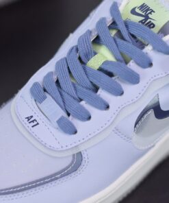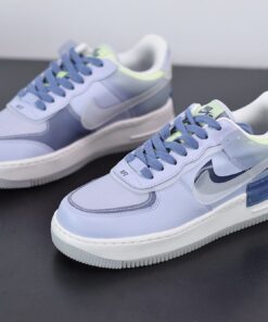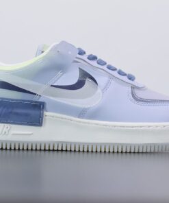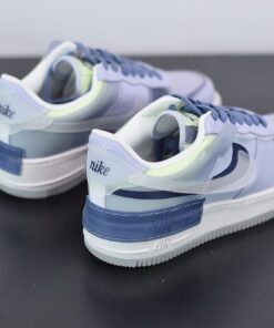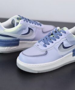 The upper on these is crafted from layered leather but unlike most other Shadow silhouette, the toe box doesn’t have any perforations. The heel boasts layered branding and, following suit, the Nike Swoosh at the side is also layered. Hits of neon yellow sit on the tongue but the rest of the sneaker comes in a mixture of blue and lilac. With a chunkier sole that your average AF1, the heel of this sneaker is fitted with Air cushioning that works to support your weight and deliver on stability.