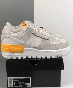 This offering sports a Beige-colored upper paired with Orange contrasting accents atop a White midsole with Black detailing includes a Swoosh lace dubrae. Other details includes a slightly higher midsole and core-outed outsole to make the shoe higher and more comfortable.