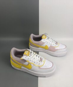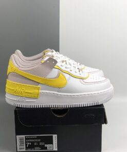 This edition sports a clean White leather upper with Beige detailing throughout. Highlighting the shoe are Yellow contrasting accents to give off a spring vibe completed with a White AF1 rubber sole.