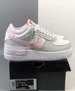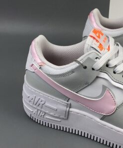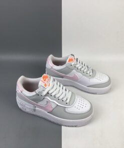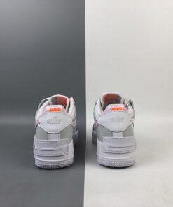 Featuring a White, Total Orange, Photon Dust and Pink Foam color combination. This Nike Air Force 1 Shadow utilizes a White leather base while mesh is applied to the collar. Grey lands on the overlays and Pink covers the Swoosh logos. Other details includes Orange accents while White lands on the midsole and rubber outsole.