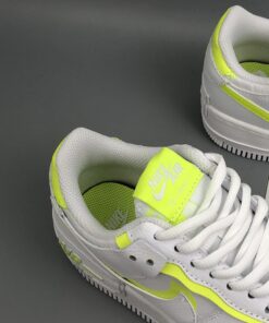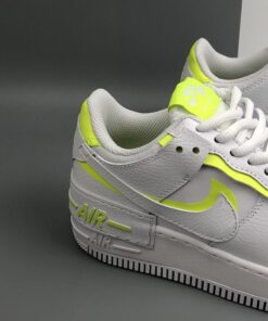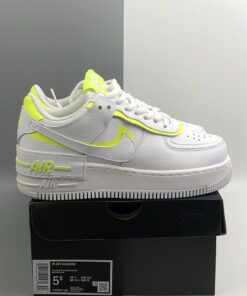Accents of neon colour brighten up this white and yellow Air Force 1 Shadow, the sneaker that’s been a hit since its release earlier this year. Nike reworks the old school classic silhouette with doubled-up layers and deconstructed details for a unique, contemporary look. The hits of colour enhance the layering effect across the lace unit and heel, with the Swoosh on the sitting on top of a coloured Swoosh that creates a shadow-like effect, linking back to the name of the shoe.