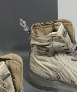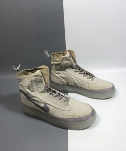 Shown here are two upcoming color options, one in Tan/Grey and the other in Black/Grey. Both are constructed with a high-cut synthetic shell upper that adds a toggle lacing system. An embroidered ripstop badge on the medial side, Swoosh logos on the lateral with a sherpa fleece insole to keep your feet cozy and warm. Both are completed with semi-translucent AF1 soles.