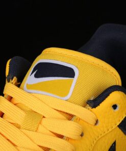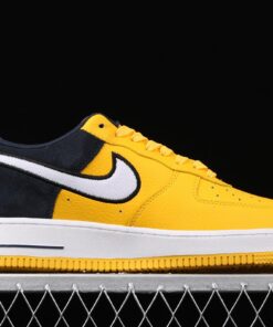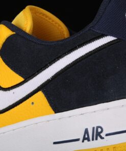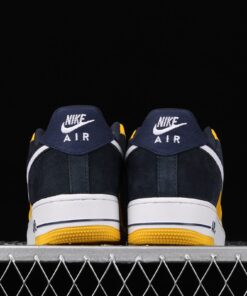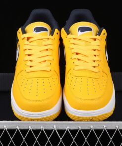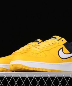 Dressed in premium leather from heel to toe, the Air Force 1 Yellow Navy is doused in a striking yellow colour scheme. White accents feature on the tongue and Swoosh logo and are outlined by a contrasting navy outline. This design element is introduced around the back, where the entire heel portion is painted in navy too. Down below, an Air infused midsole is present for additional comfort and a smoother stride, and a durable rubber outsole completes the vibrant look.