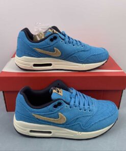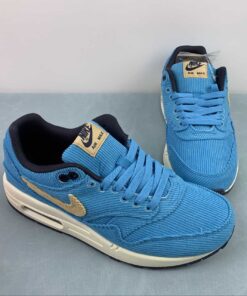 the Nike Air Max 1 “Baltic Blue” strays far away from the model’s usual construction. Instead, corduroy is used almost comprehensively, outfitting the shoe’s overlays and unders alike. And though visually one note in its emphasis on the titular cool tone, the colorway does incorporate hits of “Sesame” and “Gridiron” along the branded fixtures and lining/outsole, respectively.