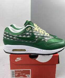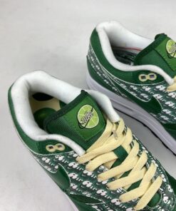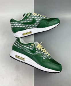 From the official images of the upcoming PRM Limeade, we can see that the uppers here are crafted from a neat mix of leather, mesh and synthetics for a well-rounded look, with the vintage-looking Air branding being the centre of attention. Classic Nike motifs such as the Swoosh are present on both the lateral and medial sides, with additional Nike Air text embroidered onto the heel. The limeade pine green upper is finished with cream laces for a perfect contrast. The pair are modelled on one of the most famous AM1’s of all time, the Powerwall Lemonade, with this year’s version switching out the yellow from the original release for green (lime). Nike Air branding is present at the tongue and heel of the shoe, with the look finished with yellow laces, paying homage to the original theme.
