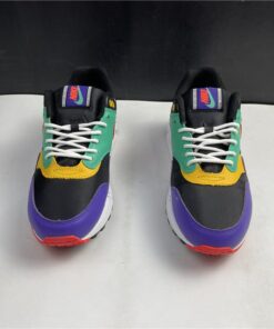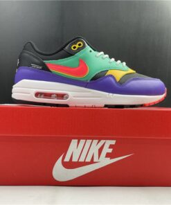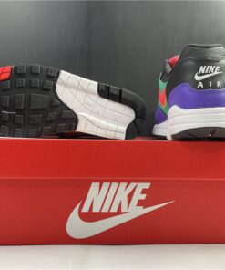 Although the Tinker Hatfield-designed silhouette first released in 1987, this new makeup is all ’90s, featuring a windbreaker-style black nylon base and bold leather overlays dressed in purple, gold and teal. The crimson midfoot Swoosh sits on top of gold trim for a double-layered design, and a “Sportswear” tag appears on the lateral quarter, accompanying the colorful tongue tag and alternate-style hangtag. Thin rope laces nod to the drawstrings found on various pieces of clothing, and a light grey midsole, crimson Air Max cushioning unit, and three-tone outsole finalize the heritage-filled look