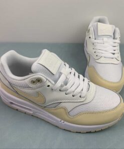 Dressed in a Summit White, Sanddrift, and Phantom color scheme. This offering of the Nike Air Max 1 comes constructed in a mix of mesh and leather materials. A White midsole atop a speckled Sanddrift rubber outsole completes the design.