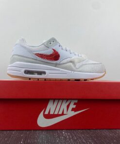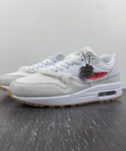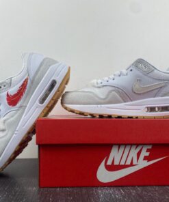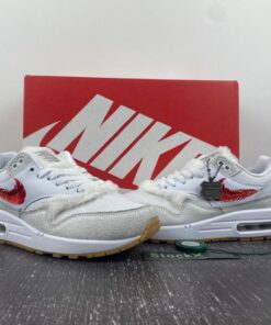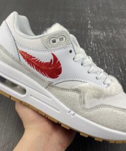 This colourway shows love for the West Coast and features a white canvas base and a cracked leather mudguard. More materials comprise the upper, fur-like materials adorn the tongue and forefoot. Smooth leather makes up the midfoot overlays where a red embroidered feather Swoosh resides on the lateral panels. Pebbled leather comprises the heel panel. The white Swooshes on the medial section come in croc-like textures. Special “The Bay” branding lands on the tongue, while the sockliner consists of California-inspired graphics. The gum rubber outsole completes the unique colourway.