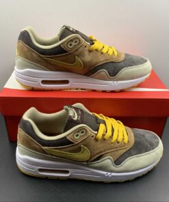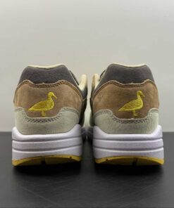 This offering of the Nike Air Max 1 comes dressed in a mix of Pecan, Yellow Ochre, Baroque Brown, Limestone, and White color blocking.While its moniker suggests a nod to the Swoosh’s Dunk Low “Ugly Duckling” Pack that debuted in 2001, its visual presentation is bereft of any hues that are similar to those kicks. Instead, it takes on a fall-appropriate arrangement as “Pecan” hits are applied to the quarter panels and heel overlays while “Baroque Brown” hits rest adjacent along the tongues, toe boxes and collars. “Yellow Ochre” accents are then drizzled over the Swooshes, laces, tongue branding and duck silhouettes, the latter of which are embroidered into the heel to replace the usual Nike branding. To round everything off, the sneakers are prepared with beige mudguards and angelic Swooshes.