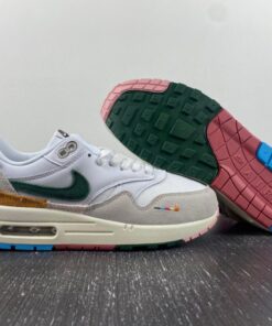 First thought to be a basketball-inspired pack, the Unlock Your Space now also includes this late-80s running shoe. This colourway comes in a clean white mesh upper with beige leather overlays on the toe. White leather comprises the midfoot overlays. The colourway is filled with unique details; three Swooshes on the medial forefoot come in blue, pink, and yellow. The TPU-covered Swoosh logos on the sides feature black and white swirls. Unlock Your Space stands atop the visible Nike Air bubble. A cut-out heel panel has a Swoosh that exposes a mesh interior. The interior lining transitions from pink to orange while the sockliner boasts that unique insignia seen on all other pairs in the group. A fresh translucent outsole completes this special colourway.