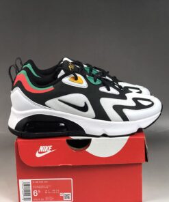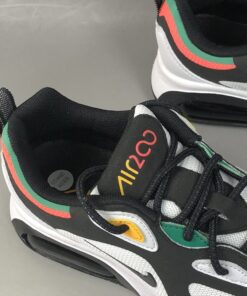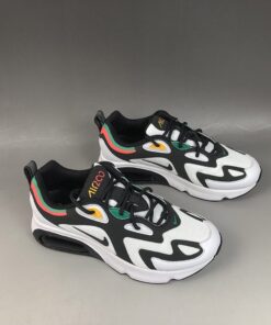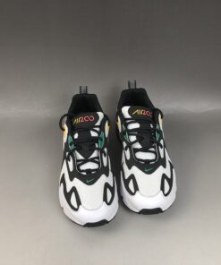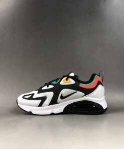This offering features a White mesh underlay with Black suede overlays while White leather wraps the toe. Highlighting the shoe are Red, Green, and Yellow contrasting accents atop a White midsole and Black rubber outsole.