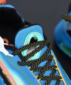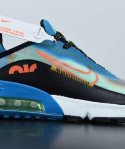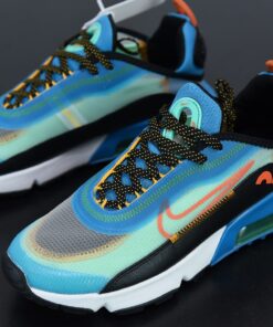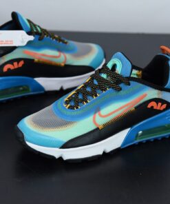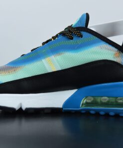 this Air Max 2090 comes dressed in a Green Abyss, Starfish and Illusion Green. Constructed with a transparent upper while Black textile is applied to the mudguard. Following we have shades of Green, Blue and Orange spread across the upper while a White midsole and Black rubber outsole finishes the look.