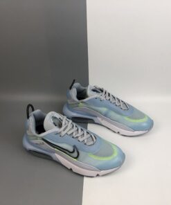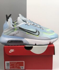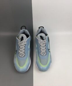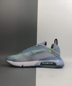 Dressed in a Photon Dust, Midnight Turquoise, and Solar Flare color scheme. This Air Max 2090 features an Ice Blue translucent-layered upper with matching cassette around the Air unit and heel logo. Volt contrasting accents atop a White midsole completes the design.