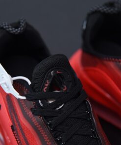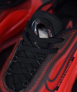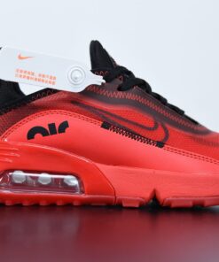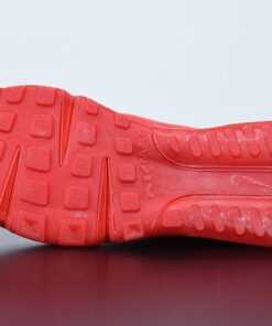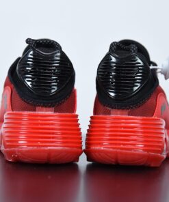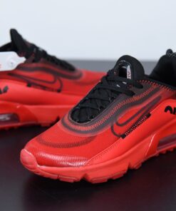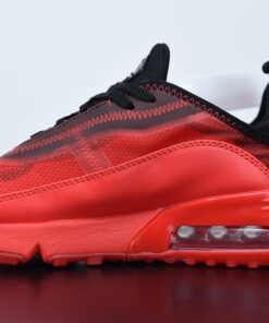 This offering of the Air Max 2090 features a Red transparent upper with a matching Red leather mudguards, stitching and rubber sole. A Black outlined Swoosh on the sides, mesh tongues and heels completes the design.