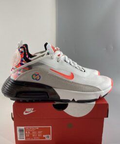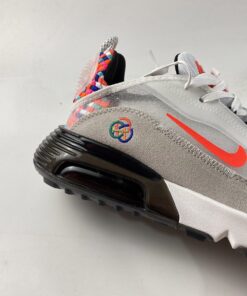 the forthcoming pair predominantly indulges in a “White” and “Infrared” color scheme. Suede mudguards deviate ever-so-slightly with their light grey makeup, while the collection’s three-circle-logo appears on the Air Max 90-inspired component. Perhaps most impressive about the forward-thinking model, however, is the multi-color heel. Reminiscent of the beloved Inneva Woven, hits of orange, pink and blue are interlaced with one another at the rear. Visible Airbag enclosures underfoot boast a dark, semi-translucent finish, as does the outsole.
