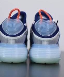 they feature the traditional White transparent upper while Blue textile leather covers the mudguard. Blue mesh is also seen on the tongue and heel while Red is applied to the eyestay, stitching and heel pull tab. Completing the look is a partial translucent and White midsole and matching outsole.