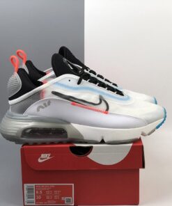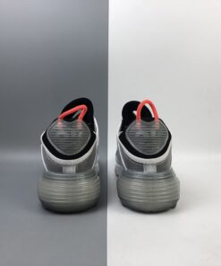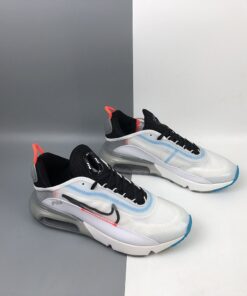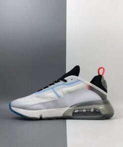 This white and black Air Max 2090 takes inspiration from the legendary Air Max 90 that is now celebrating its 30th Anniversary. A transparent knitted promises a lightweight feel whilst giving this AM2090 a futuristic aesthetic. Bold touches of colour include a blue and red stitched line across the lace unit and a red loop pull tab attached to the heel for easy access and quick adjustments.