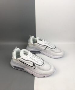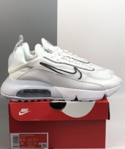 This pair comes with White throughout along with transparent coating on the overlay and the tongue. In addition we have Black that lands on the cross stitching, outlines the Swoosh on the panels, checkered on the heel pull tab and other branding throughout. Other details includes White on the midsole, plastic overlays on the heel and a White rubber outsole.