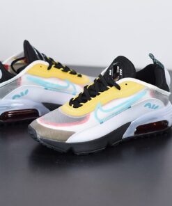 Mixed-materials uppers are predominantly clad in “White” and “Black,” and feature eye-catching accents along their profile. Branding on the lateral side are animated by “Bleached Aqua”, while taping around the tongue boasts a disparate “Speed Yellow” hue. Elsewhere, stitching visible through the Air Max 2090’s semi-transparent body dons a “Chile Red” that also takes over the Airbag underfoot. Air Max 90-inspired cassettes at the heel forgo the vibrant for a milky-“White”; similarly, EVA foam midsoles and their accompanying tread indulge in subtle “Black”.