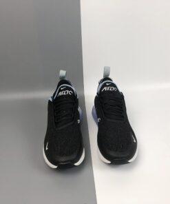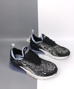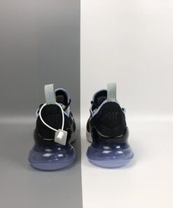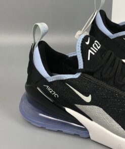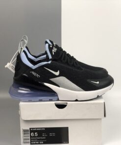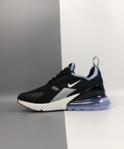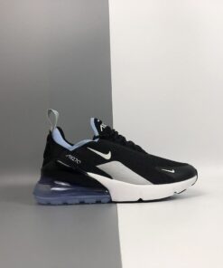 Dressed in a Black, Summit White, and Aluminum color scheme. This Nike Air Max 270 features a new Black mesh upper with White detailing and soft Aluminum Blue contrasting accents on the collar and heel bubble.