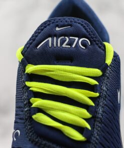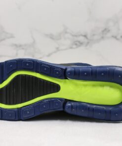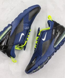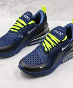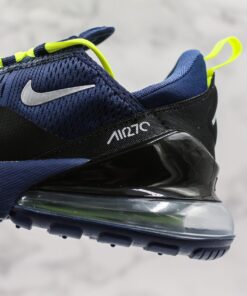 This Nike Air Max 270 comes dressed in a Blue Void, Volt and Metallic Silver color combination. Highlighted with Blue across the upper, we then have Metallic Silver used on the branding and Black on the overlays. Completing the look we have Volt on the laces, pull tabs and across the rubber outsole.