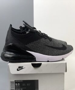 This upcoming pair comes dressed in the popular “Oreo” theme having a mix of Black and White. It features a full Flyknit upper, sock-like ankle collar, leather detailing atop its signature Air Max 270 heel.
