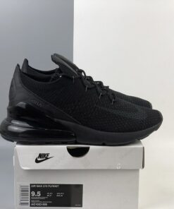 This iteration features an all-Black upper constructed in a mix of Flyknit, Flywire on the laces and leather detailing wrapping the heel. A solid Black Air Max sole unit in the heel and rubber outsole completes the design.