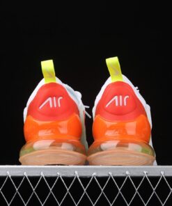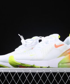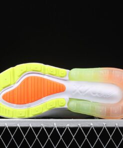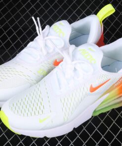 This offering features a White mesh upper with Volt accents on the underlays. Volt continues on the tongue, pull tab, and outsole along with a gradient Air Max 270 heel unit that fades into Orange completing the summer vibe.